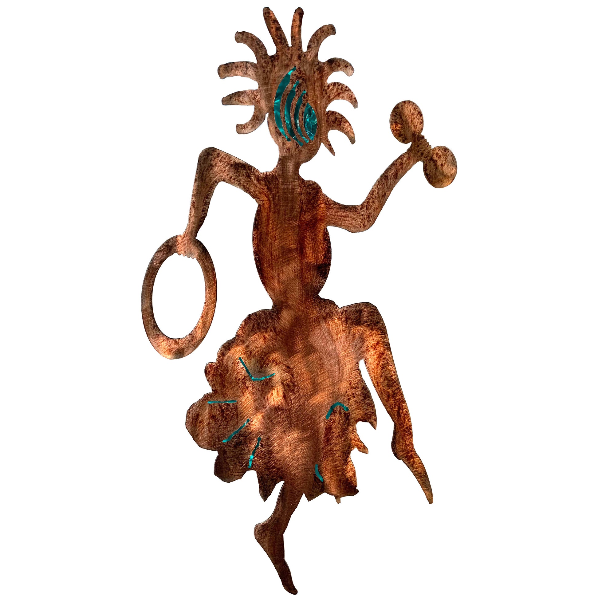 Add some fun, exotic vibes to your home with this stunning Desert Dancer "Cindi" Metal Art Decor. This desert dancer is handmade with quality steel material by our talented metal artisans, forming the outline of her body, hair, the instruments she's holding, and her skirt with incredible detail.