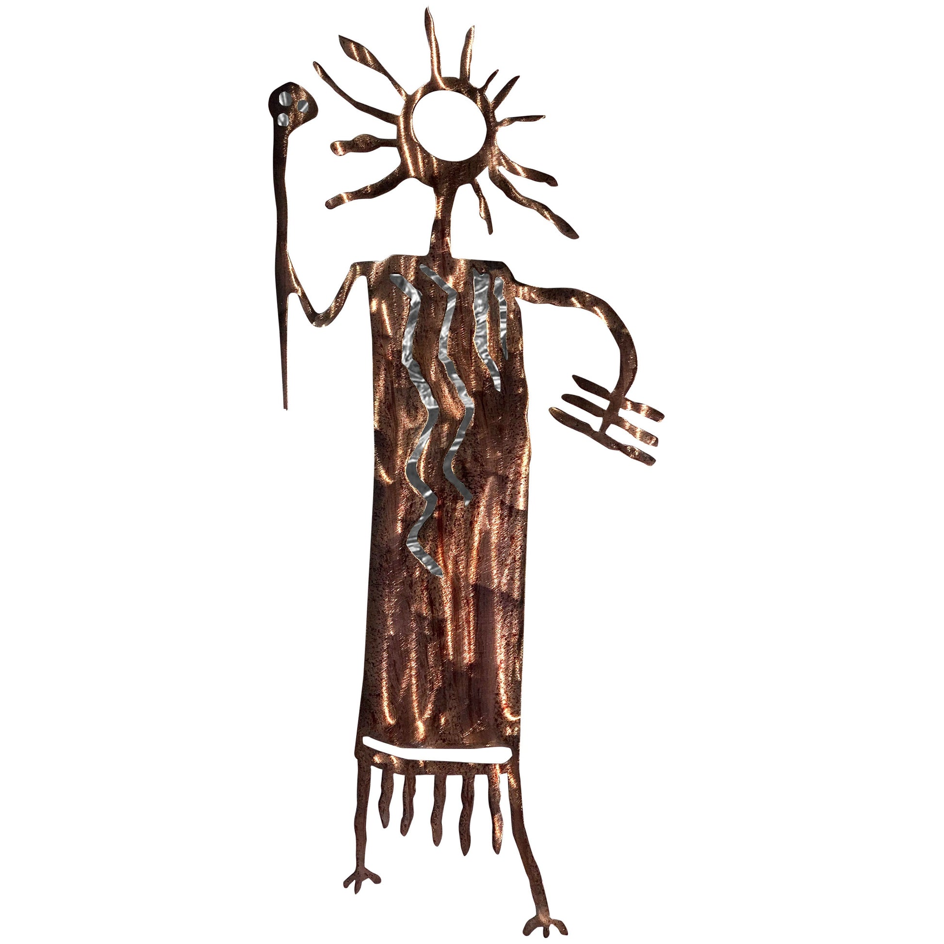 The Petroglyph "Ted" Metal Art Decor features a man holding tools/instruments and comes in various colorways. You can decide what story Ted is telling! Regardless, it makes a wonderfully unique wall decoration to any home.