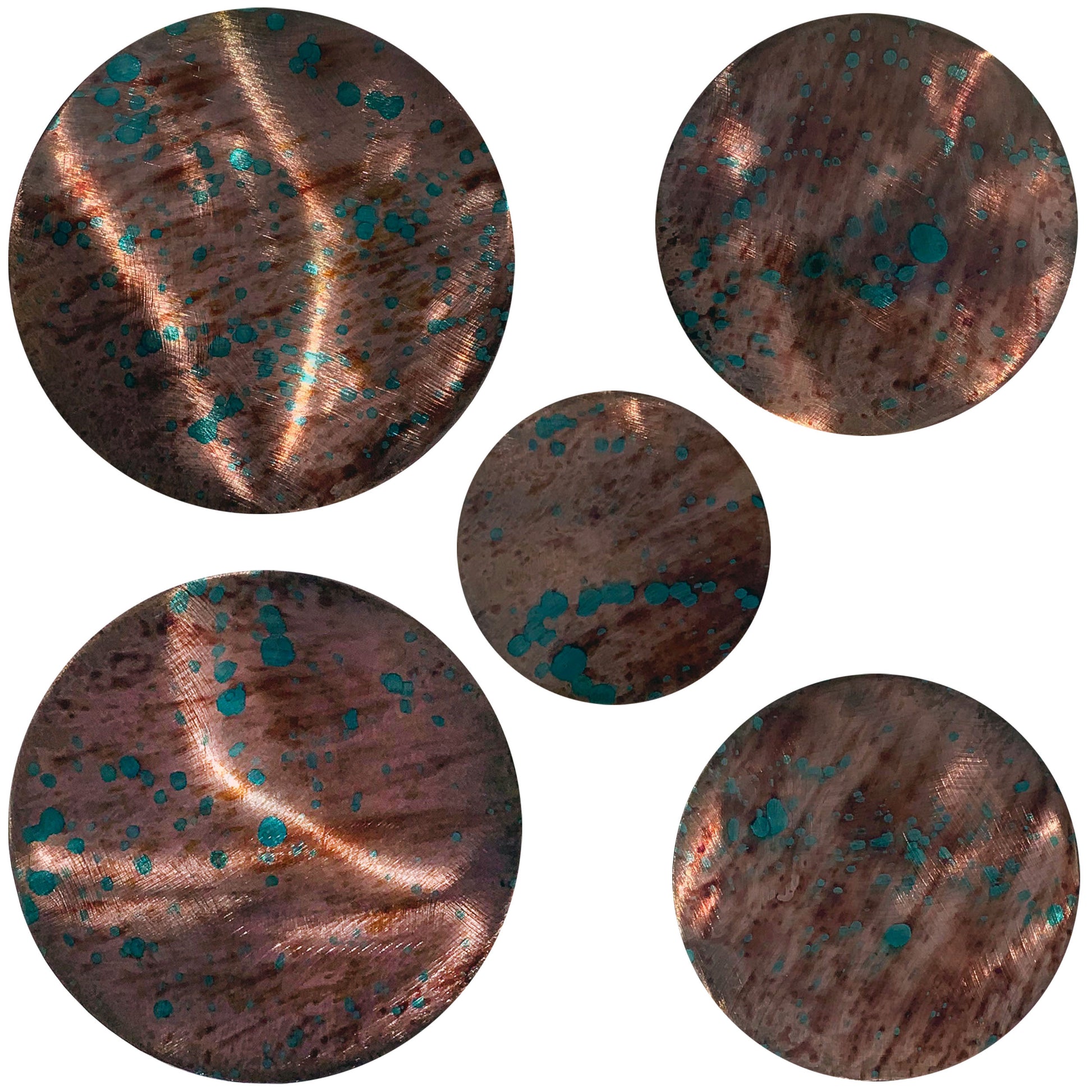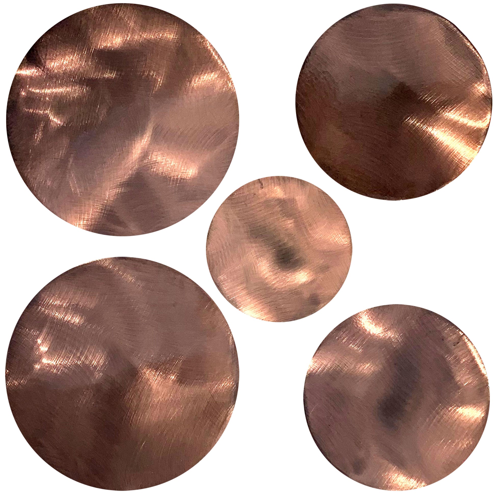 The Sidewave Circles Metal Art Set is sold as a set of five circles, with a total of three unique sizes amongst them. These beautifully compose a variety of configurations in conjunction with the "Sidewave" metal wall sculpture. They allow you to get creative with your decorating at home by selecting colors that appeal to your decor and the current season.