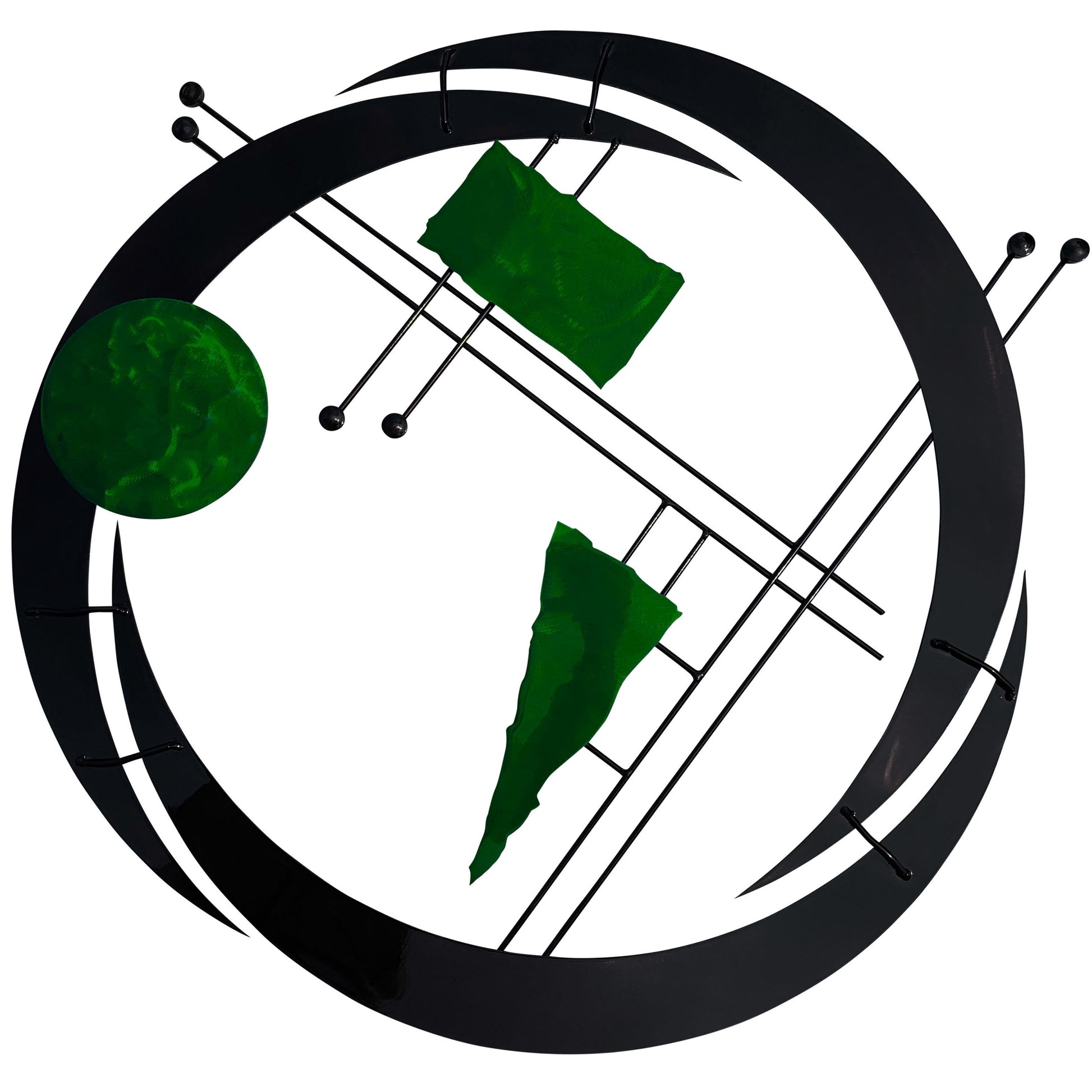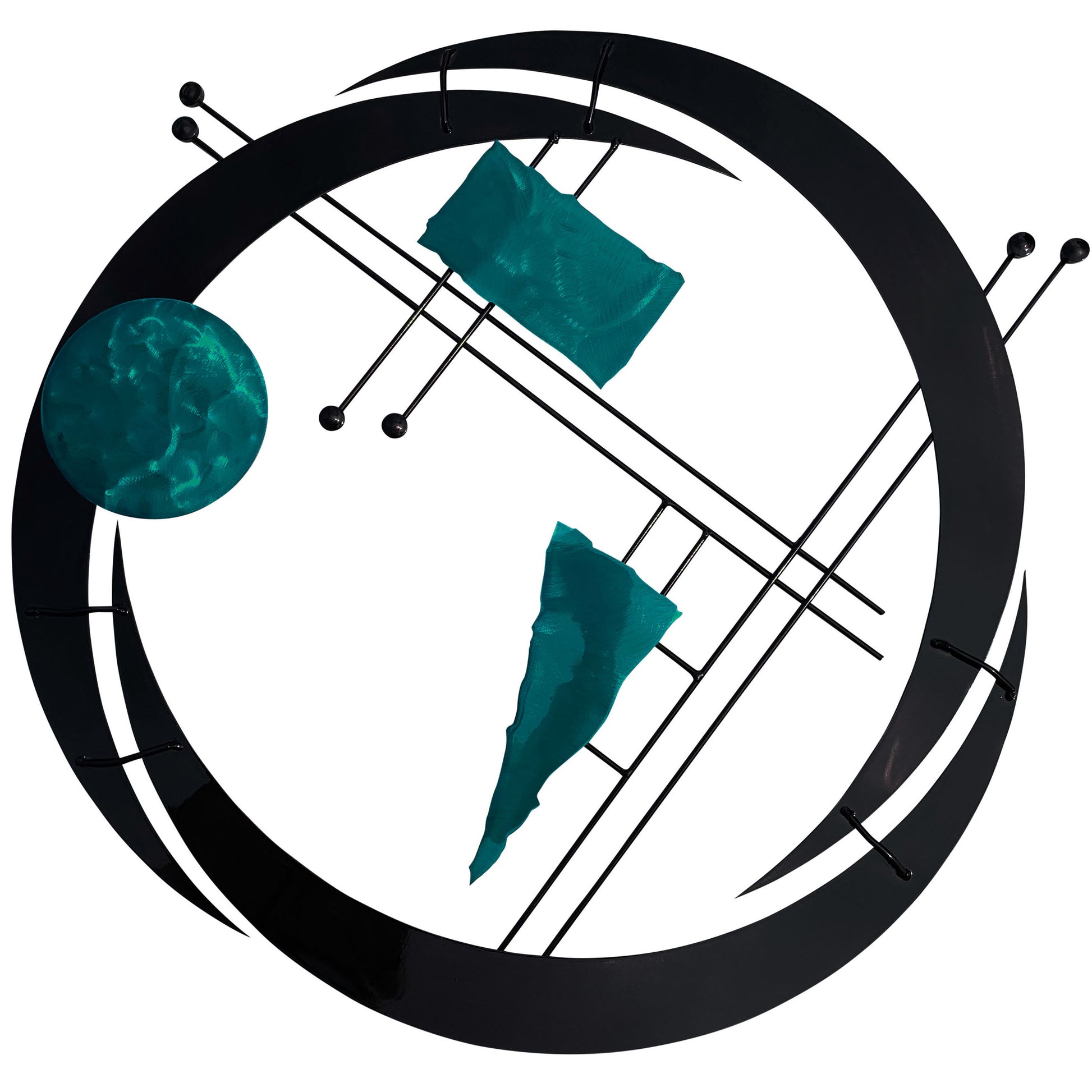 With its characterizing details inspired by iconic Atlantis, the Swirl Metal Art piece is guaranteed to catch the gaze of anyone nearby. The piece uses a circular shape made up of three separate swirls, and interconnecting are precisely cut lines that finish with three shapes - the primary colored components of the design. These colors are chosen by you from a selection of mesmerizing "candy" shades, including candy blue, green, orange, and even teal. Choose a color that matches your decor and preferences.